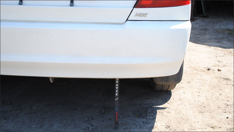 Очень важно, чтобы антистатическая лента крепилась исключительно к металлической детали автомобильного кузова, а не к бамперу. При этом на месте крепления ленты необходимо зачистить краску до металла. Стоит отметить, что ленту необходимо крепить так, чтобы она обязательно касалась асфальта.