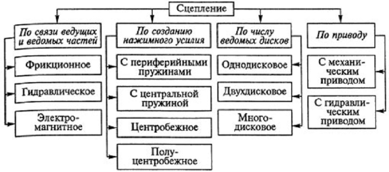 В общем фрикционные сцепления можно разделить на следующие критерии: