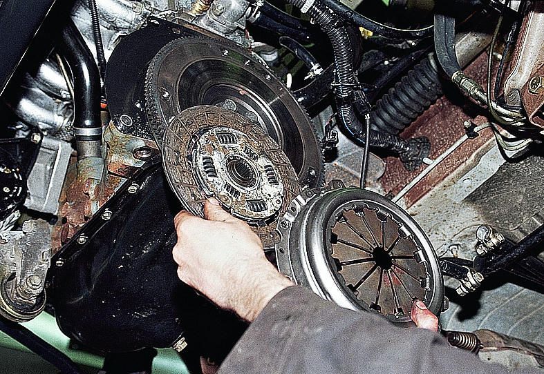 Диафрагменная пружина и нажимной диск, оказывают воздействие на ведомый диск, в сборе являют собой единый узел, который называется «корзиной сцепления». Что касается ведомого диска сцепления, то он находится между маховиком и корзиной, и соединяется с первичным валом КПП при помощи шлицев, по ним он может передвигаться.