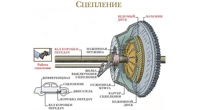 Сцеплением является один из компонентов автомобильной трансмиссии. Благодаря ему выполняется краткосрочное отсоединение работающего мотора от приводов трансмиссии. После переключения скорости сцепление плавно включает данную связку обратно в работу.