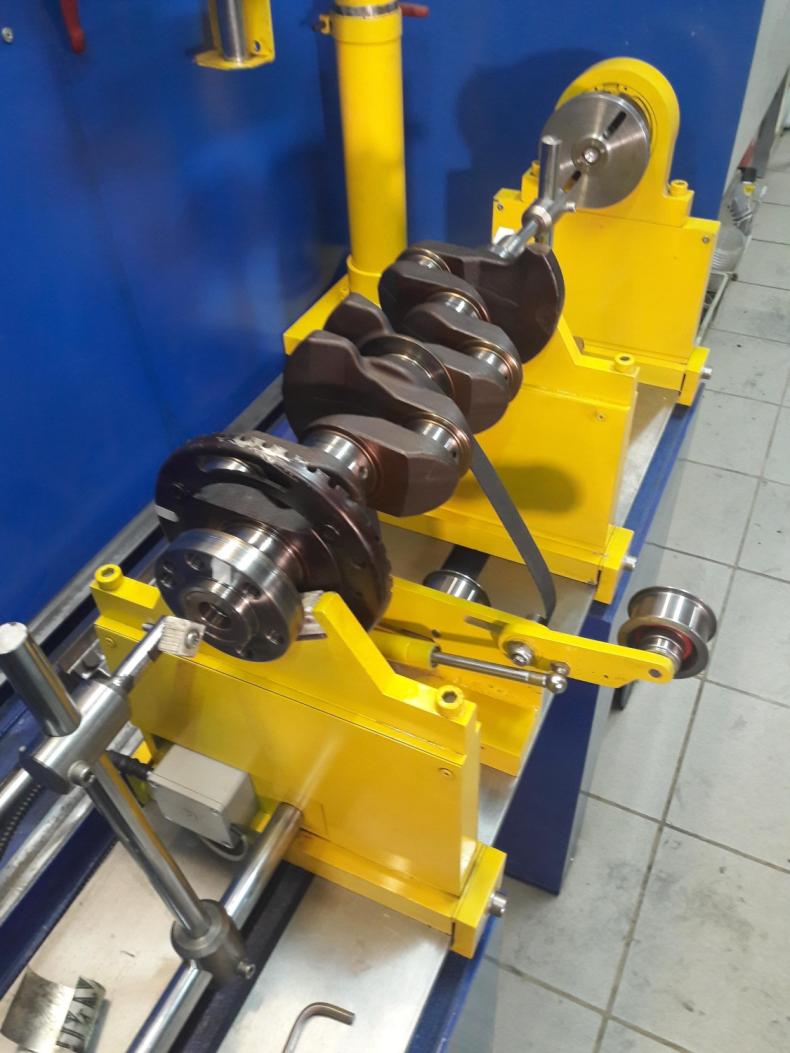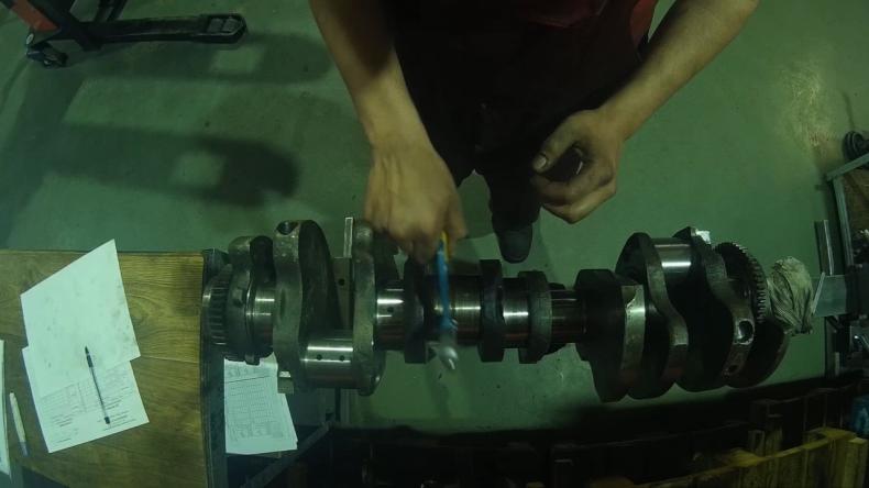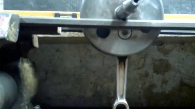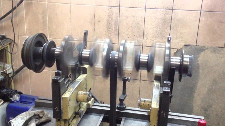 - На ровно расположенный станок укладывается коленчатый вал. При наличии неравномерностей в развесовке вал будет крутиться, причем вплоть до момента, пока наиболее тяжелый участок не сместится строго вниз. Обнаруженную неравномерность необходимо устранить.