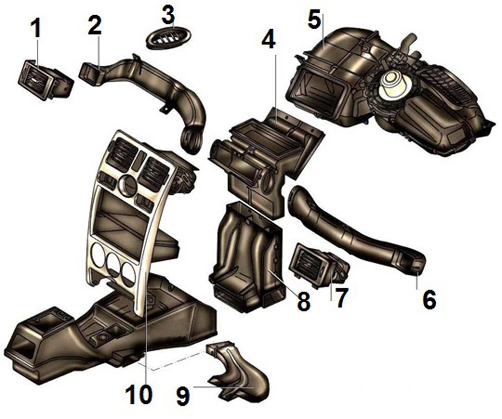 - Воздуховод обогрева салона — 9.