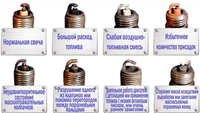 - демонтированная свеча резко отличается по внешнему виду внутренней части от нормального состояния, соответствующие цветные картинки несложно найти.