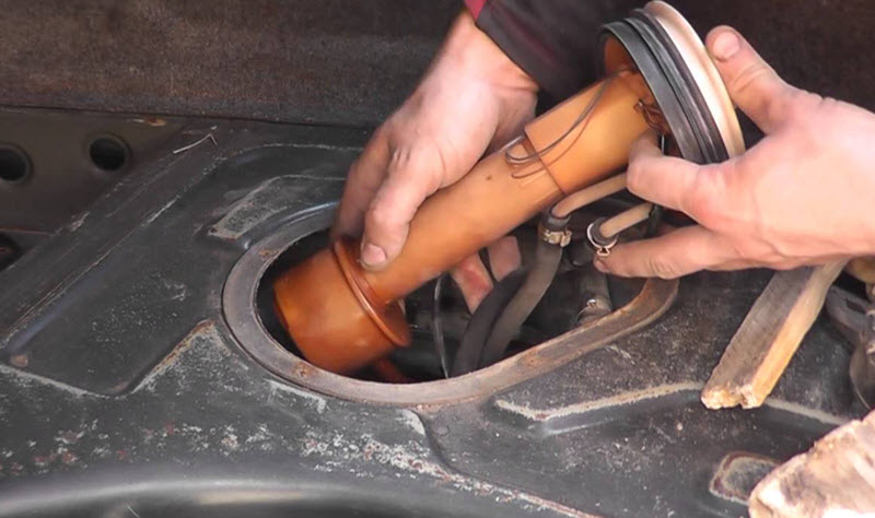 Для этого потребуется доступ к верхней части бака, обычно люк расположен под подушкой заднего сиденья или в багажнике. Датчик демонтируется с насосного модуля и меняется на новый.