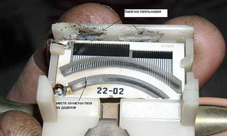 Исключением могут стать замеченные обрывы в проводке. Производится пропайка и изоляция мест обрыва. Но обычно причиной отказа становится износ поверхностей трения в потенциометре.