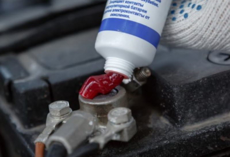 После очистки клеммы необходимо защитить. Это производится их смазкой при помощи любых универсальных консистентных составов. Например, технического вазелина, хотя подойдёт и любой другой похожий продукт.