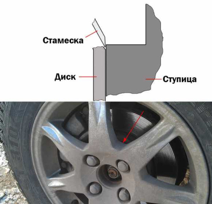 Место, где это способно нанести максимальный вред, расположено между центрующим буртиком ступицы и большим отверстием в середине колёсного диска. Эта зона контакта сделана в виде цилиндрической поверхности определённой высоты как на ступице, так и в диске.