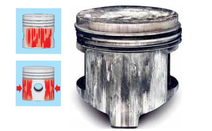 Особенно это касается современных эффективных моторов с так называемыми Т-образными поршнями, в которых площадь юбки сведена к минимуму, чтобы уменьшить поверхность трения.