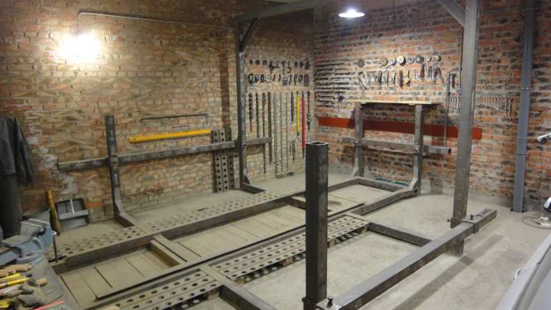 В комплект платформенного стапеля входят также выездной мост и специальные рельсы. Они используются для фиксации автомобиля.