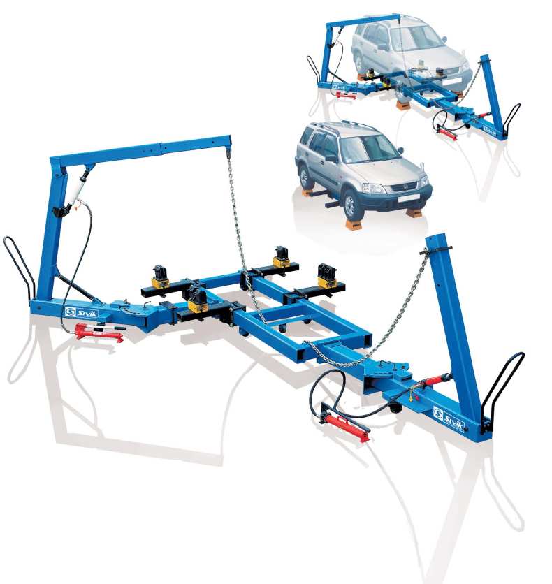 Кузовной стапель позволяет восстановить прежние формы и размеры кузова посредством прочного закрепления в раме и равного давления с разных направлений.