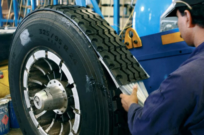 При горячем способе покрышка помещается в форму, где зона протектора заполняется резиновой смесью с последующей вулканизацией при той же высокой температуре, что и во время производства новых шин.