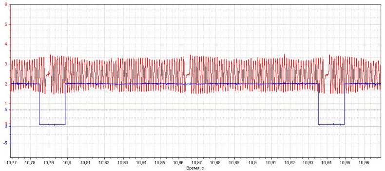 Когда реперная точка проходит мимо датчика, значение разности потенциалов становится равным 0,2 – 0,5 В, в зависимости от марки автомобиля. Этот сигнал поступает на электронный блок управления.
