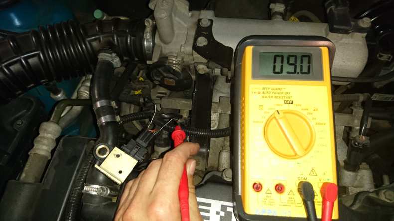 - Если вольтметр показывает напряжение порядка 13,4 В, значит, катушка рабочая. При этом на сигнальном проводе мультиметр покажет 12 В.