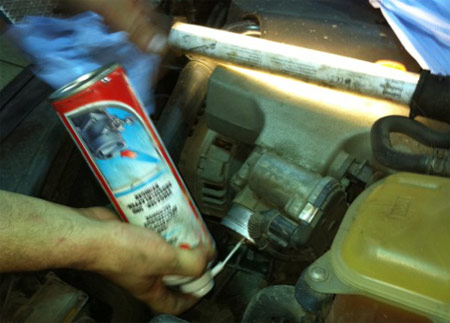 На дроссельную заслонку необходимо нанести чистящее средство в виде спрея и через несколько минут все удалить хлопчатобумажной ветошью.