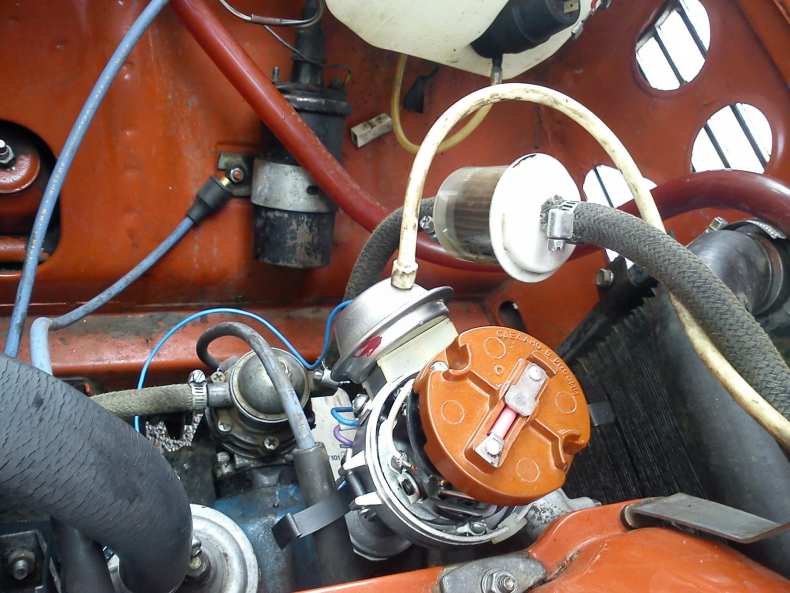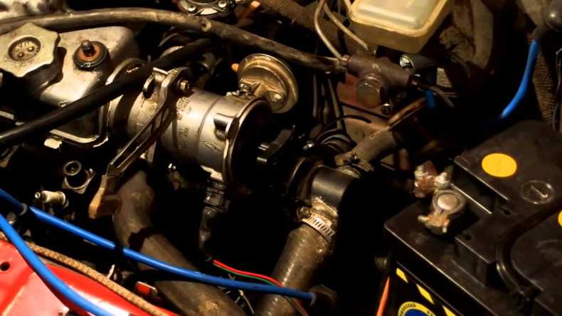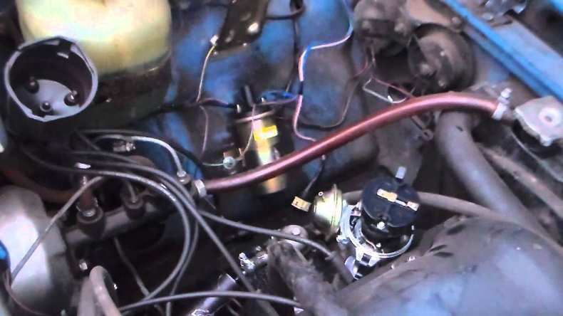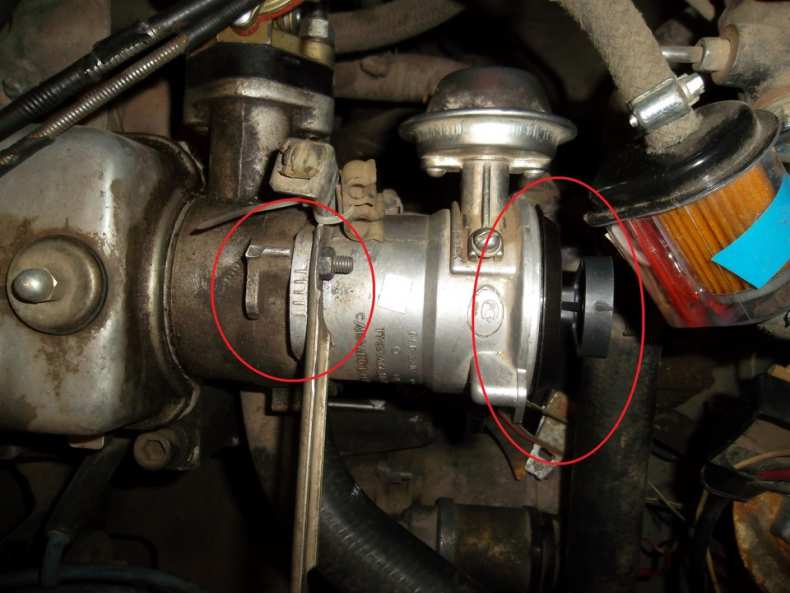 Можно запомнить положение вакуумного корректора угла опережения зажигания относительно бензошланга. В такое же положение необходимо установить новый трамблёр.