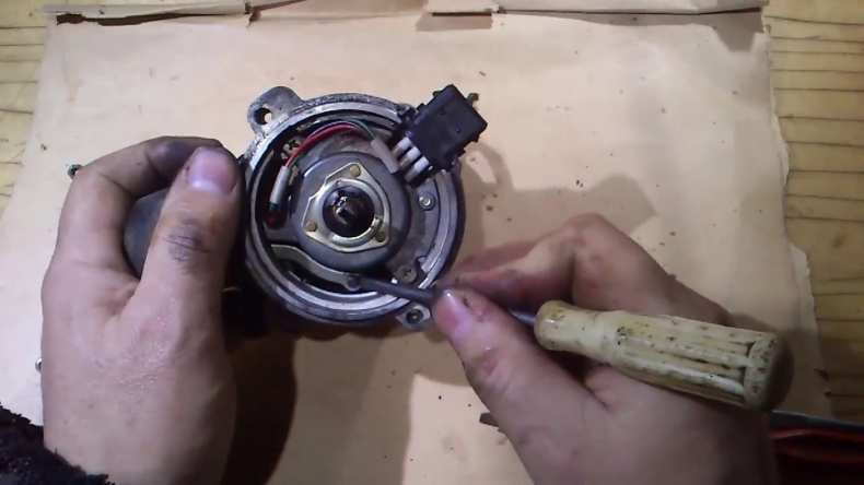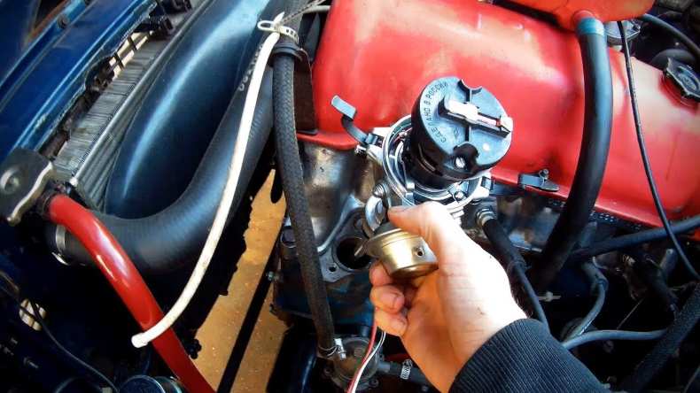 - При заведённом автомобиле осторожно медленно её откручивают, чтобы слегка освободить трамблёр, который после этого слегка поворачивается влево и вправо.