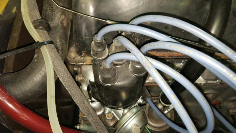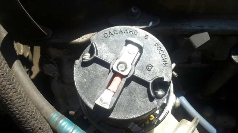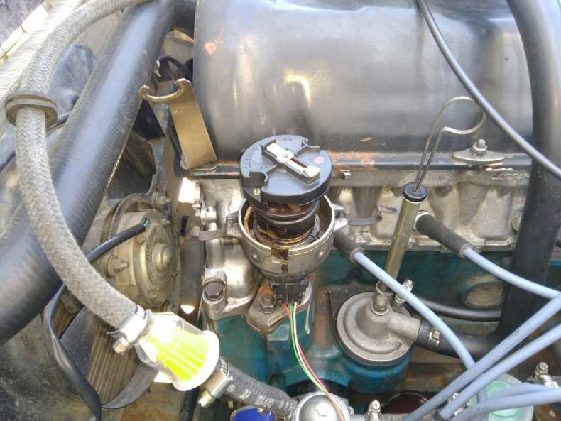 Заканчивают сборку трамблёра, одевают шланг вакуумного корректора, крышку трамблёра, по порядку провода. После этого можно подключить массу, завести автомобиль.