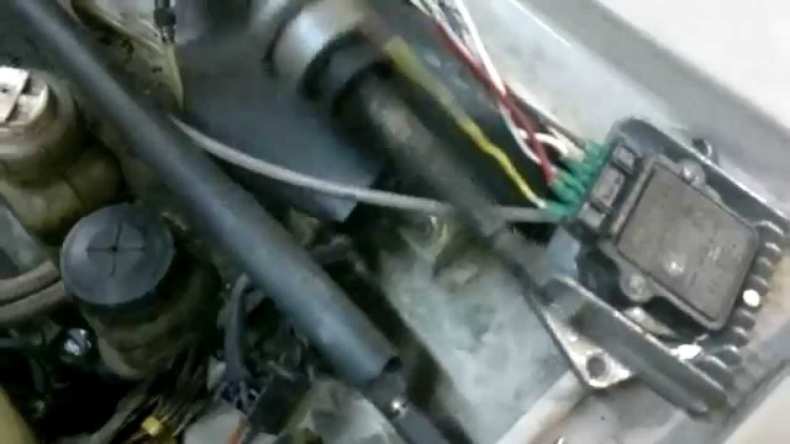 - Движениями ключа сверху вниз, подкручивая крепление слева, выставляют трамблёр в положение, необходимое для того, чтобы сделать рабочие отметки, по которым будет установлен новый трамблёр.