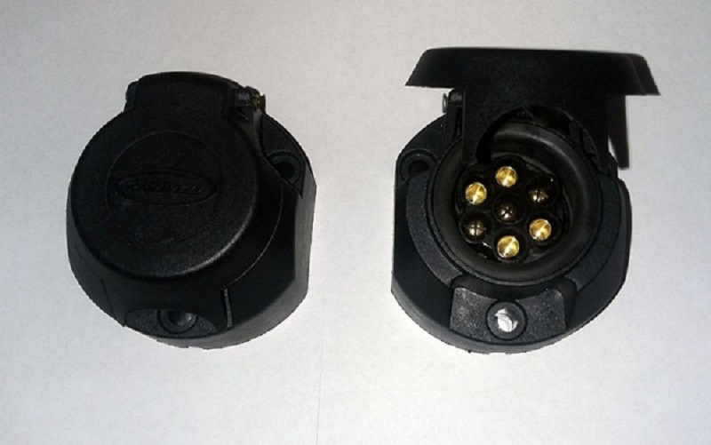 7-контактные розетки применяются в автомобилях, которые эксплуатируются в странах бывшего СССР. В этом случае применяются контакты для подсоединения стоп-сигналов, поворотников и габаритных огней. В обоих случаях контакты должны располагаться зеркально.