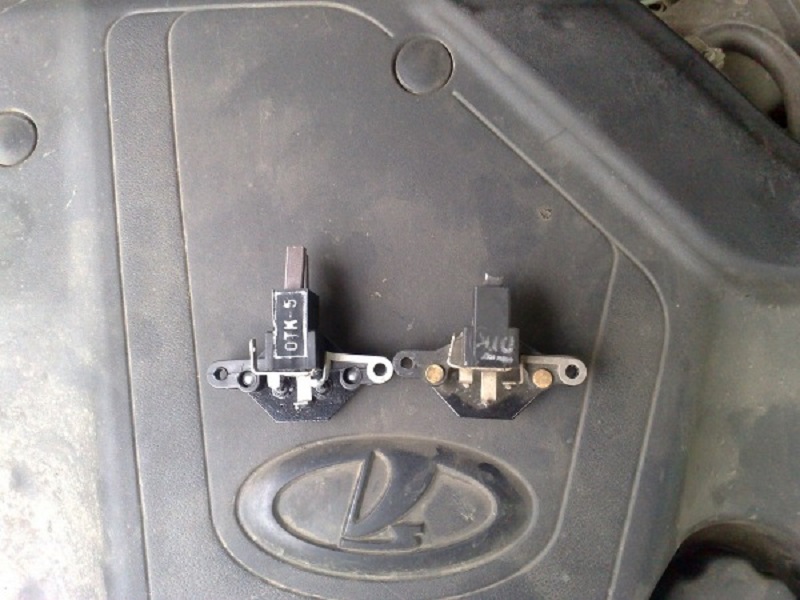 - Окислились контактные кольца, залипли либо вышли из строя щетки. В таком случае очистите кольца и замените щетки генератора.