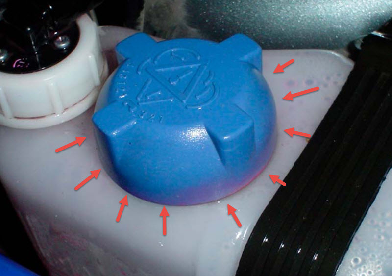 Их опасных мест это шланги и радиаторы. Чтобы это предотвратить, слабым местом искусственно делается бачок. Его раздувание трудно не заметить.
