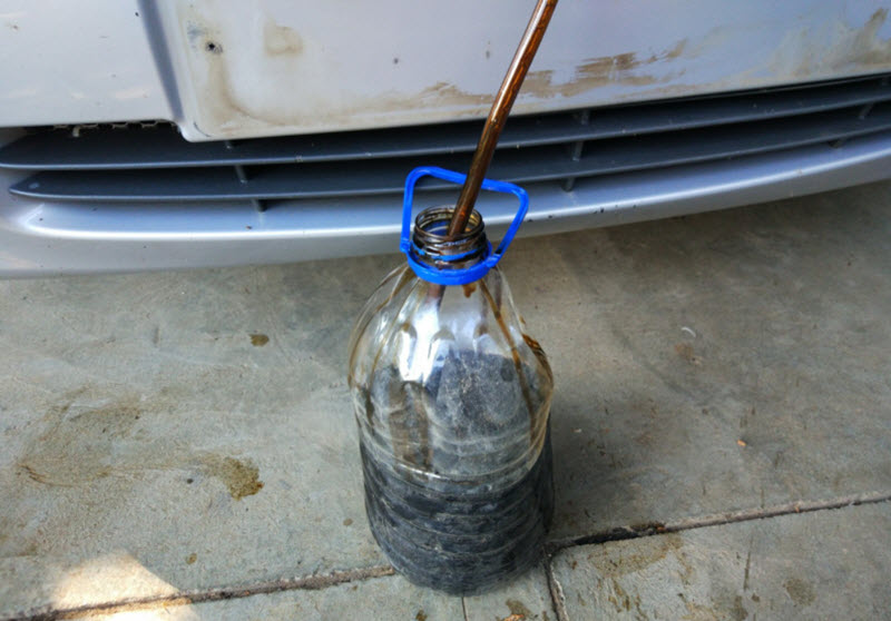А если создать аналог аппарата подручными средствами, существует много описаний подобных самоделок, то и поездки к специалистам можно избежать. Откачка производится через отверстие для масляного щупа при помощи гибкого шланга.