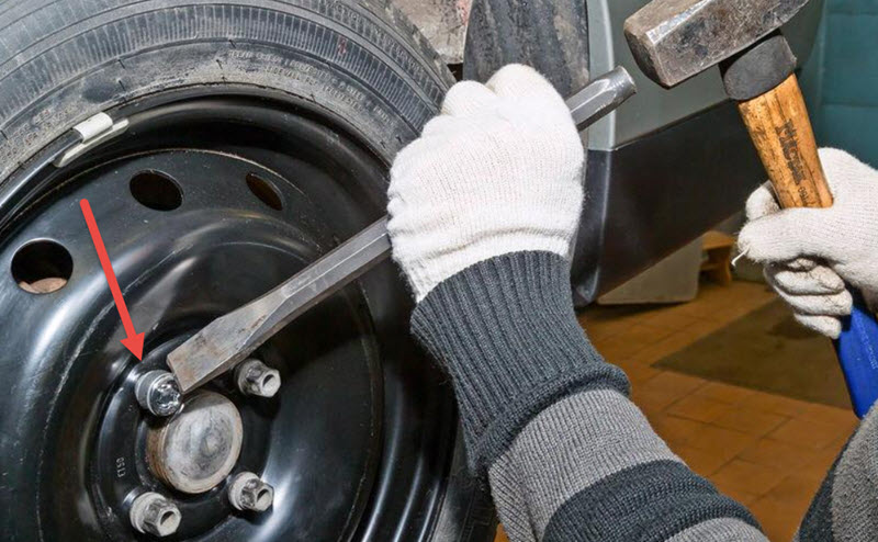 Колёсный диск крепится несколькими болтами. Поэтому притянут он неравномерно, слегка деформируясь. Этот эффект можно использовать для ослабления нужного болта. Достаточно протянуть остальные увеличенным моментом.