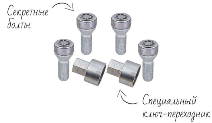 Все болты менять на секретные нет необходимости. Достаточно одного на каждое колесо. В большинстве случаев вор просто пройдёт мимо и обратит внимание на соседний автомобиль.