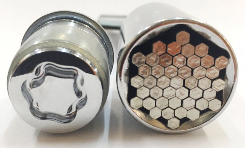 Головка типа Gator Grip представляет собой набор многогранных прочных штырей, под действием внутренних пружин заполняющих сложный профиль нестандартных болтов.