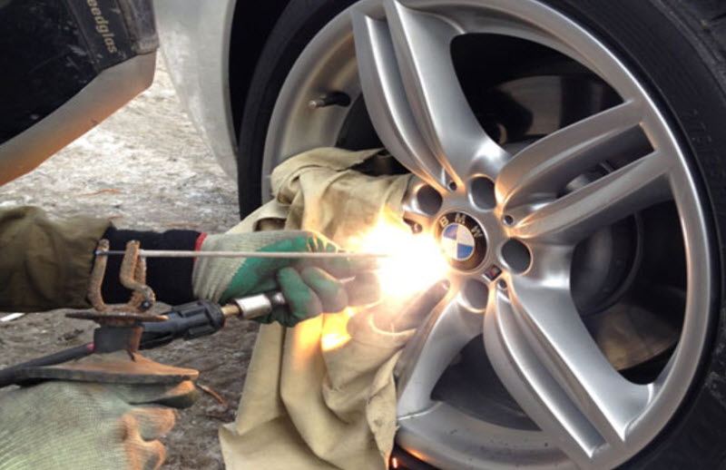 Распространённый способ среди работников СТО. На выступающую часть секретного болта наваривается более распространённый профиль, обычно простая гайка. Обеспечить нужную прочность соединения очень непросто, гораздо легче испортить колёсный диск.