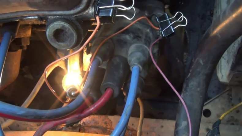 Данный способ является менее точным, чем способ регулировки с помощью стробоскопа, но более доступным и простым. Его принцип заключается в подключении проводов контрольной лампы между катушкой, лампой и массой.