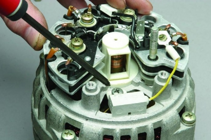 При проверке демонтированного генератора, в первую очередь, обратите внимание на ремень, поскольку не редко регулировка ремня позволяет решить проблему с плохо функционирующим генераторным устройством.