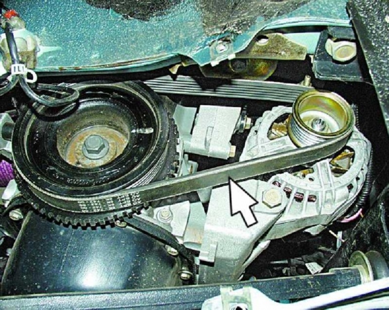 - Снимаем ремень генератора и выполняем запуск двигателя, чтобы убедиться, что причиной поломки является подшипник генератора.