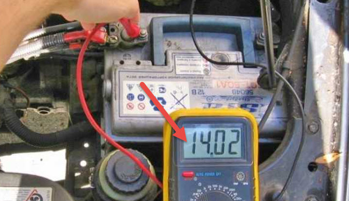 Иногда этот прибор имеется в штатной комплектации автомобиля. Но можно воспользоваться и мультиметром. Напряжение в бортовой сети, которое желательно измерить непосредственно на клеммах АКБ, должно быть не менее 14 Вольт при работающем двигателе.