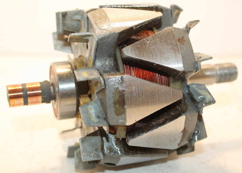 Ротор проверяется на сопротивление (прозвонкой). Обмотка имеет номинал в несколько Ом, обычно 3-4. Она, не должна иметь замыканий на корпус, то есть омметр покажет бесконечность.