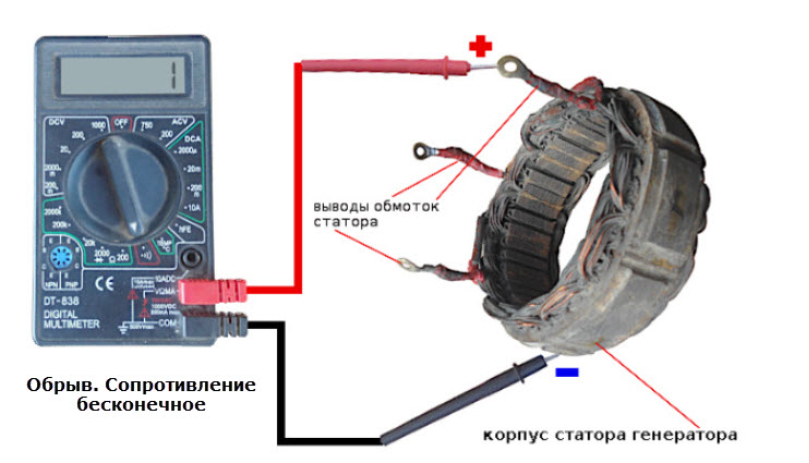Многое можно выяснить прогоном генератора с вольтметром, амперметром и нагрузками на стенде, но в любительских условиях это нереально. В большинстве случаев оказывается достаточно проверки в статике при помощи омметра, входящего в состав недорогого мультиметра.