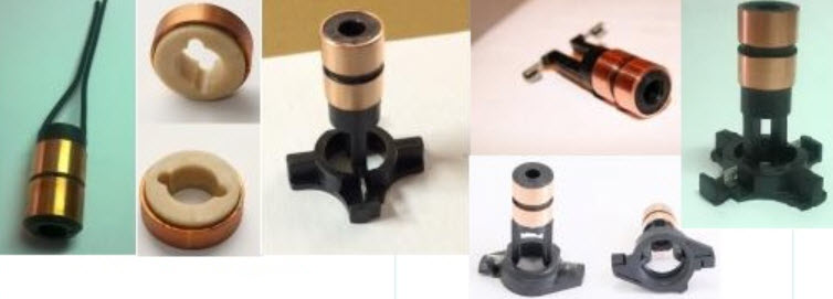 Связь с обмоткой происходит через вращающееся соединение в виде ламельного или кольцевого коллектора и металлографитовых щёток.