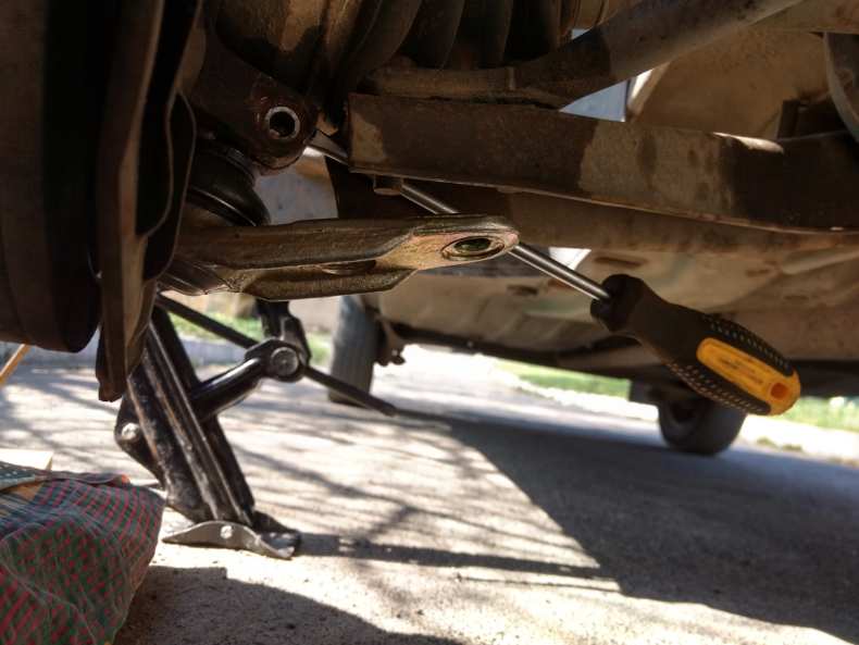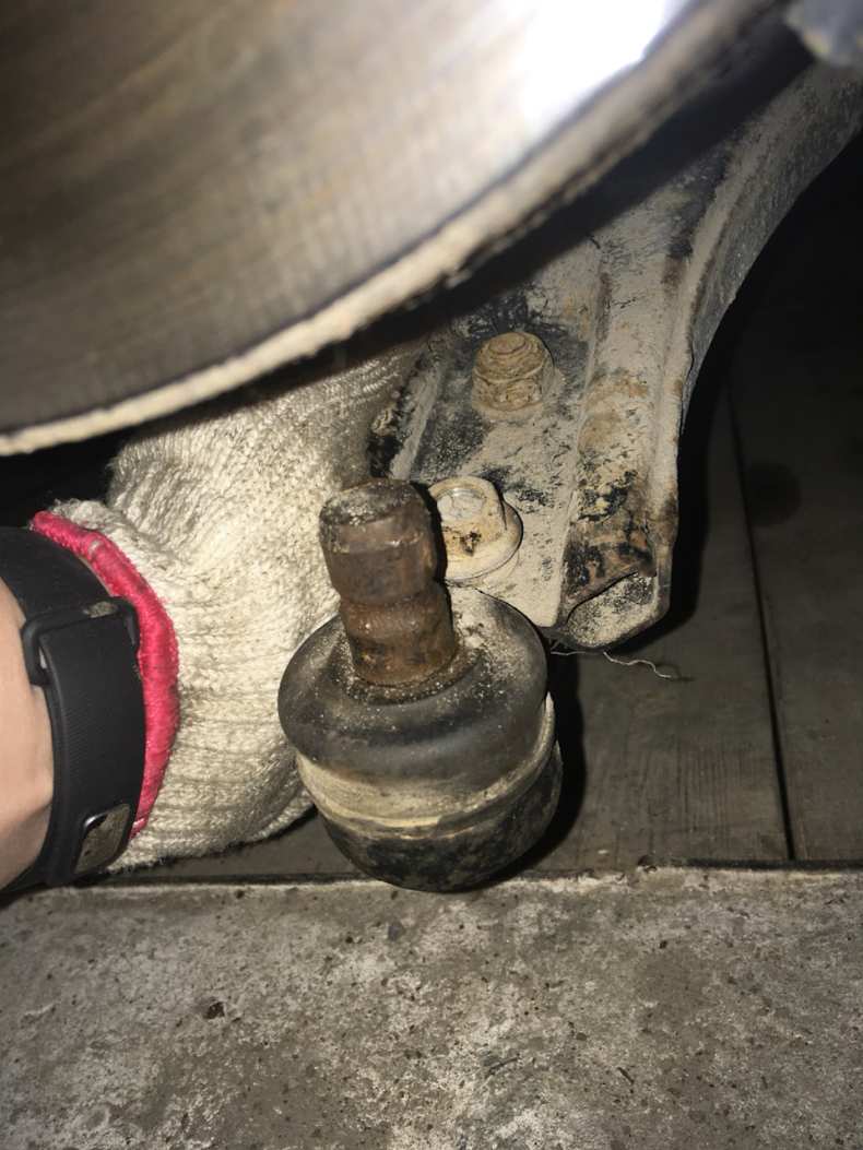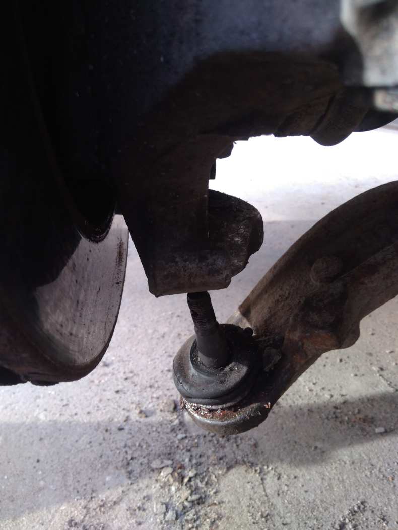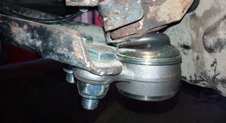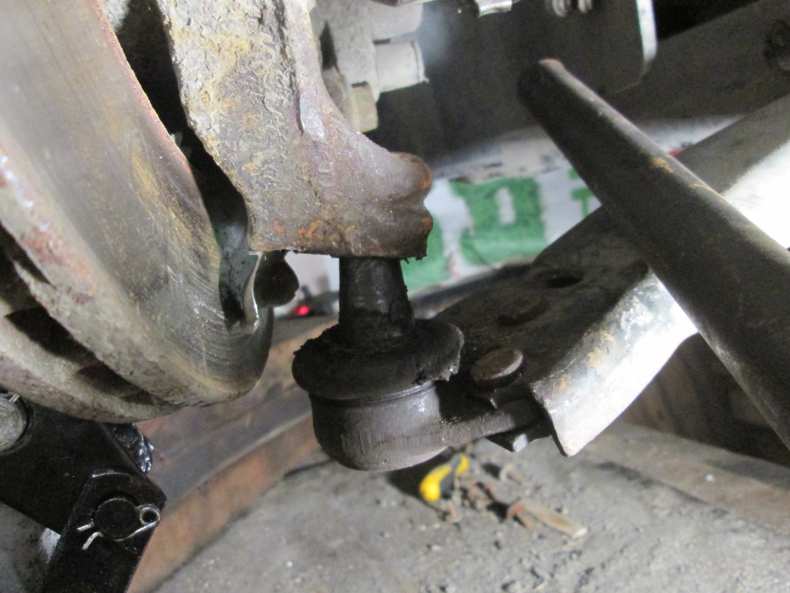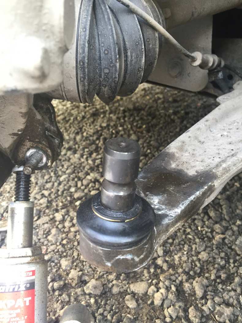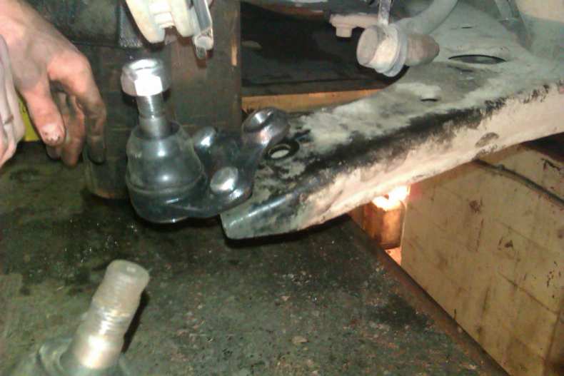 Узнать состояние шариковой опоры на помосте или яме нетрудно. На пружины подвески давит масса автомашины в сжатом состоянии. Хватит того, чтобы вставить монтировку меж цапфой и рычагом, сделав несколько ритмичных движений.