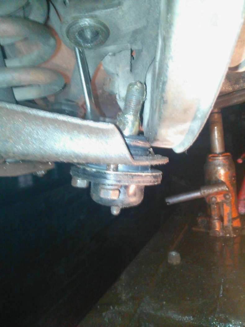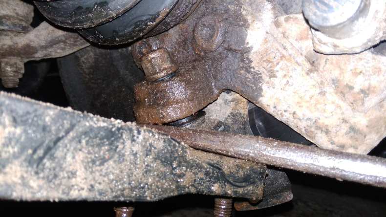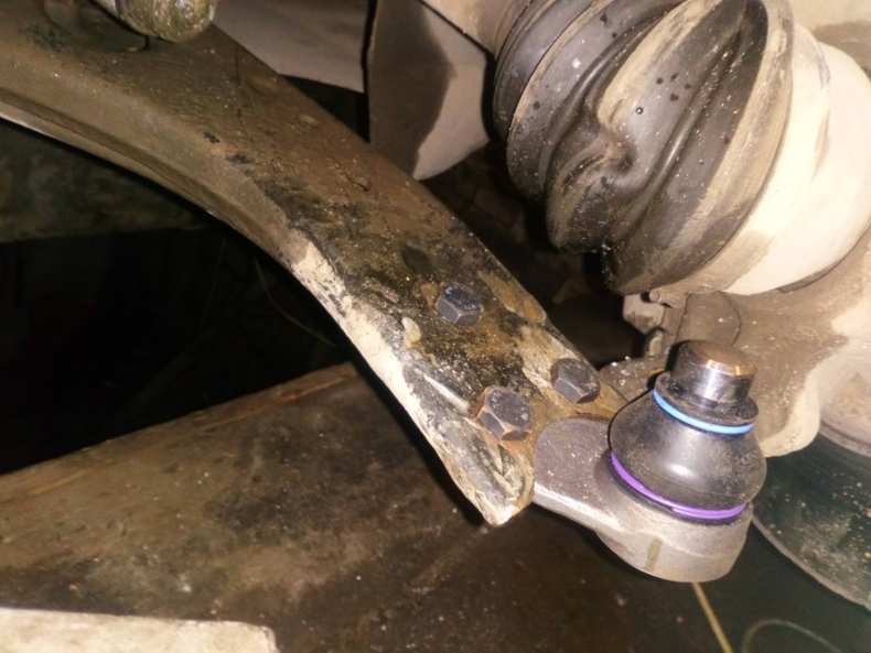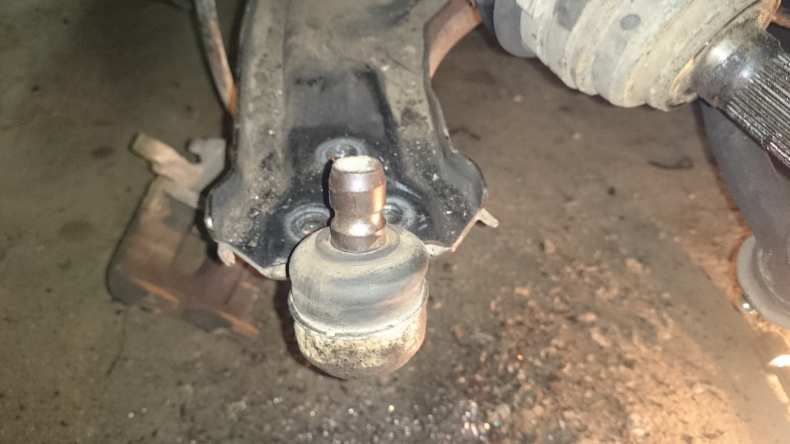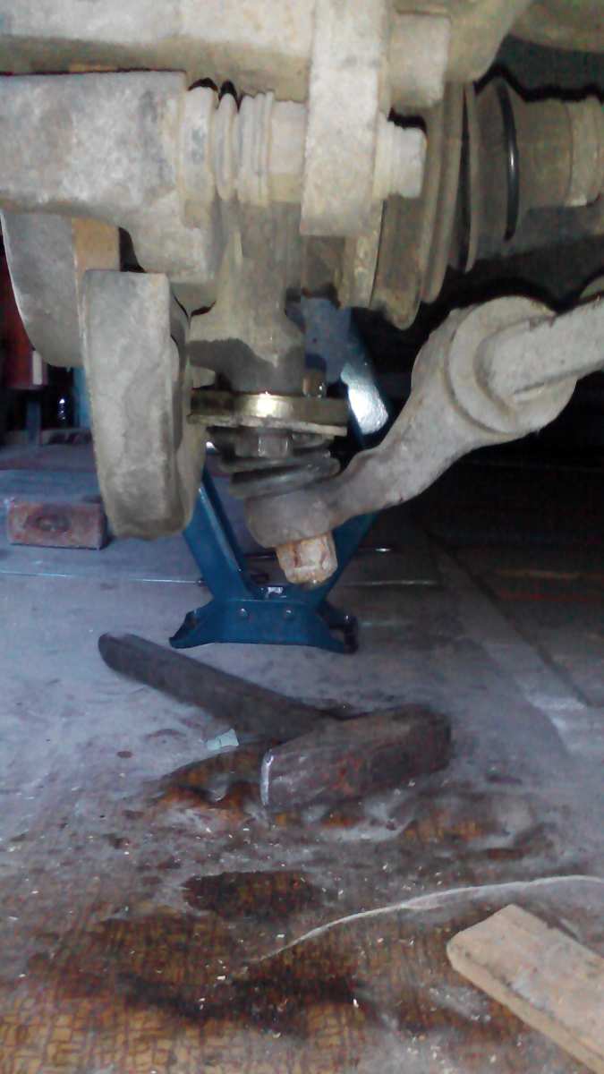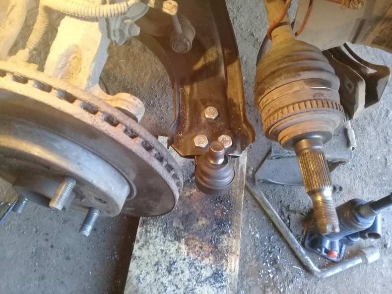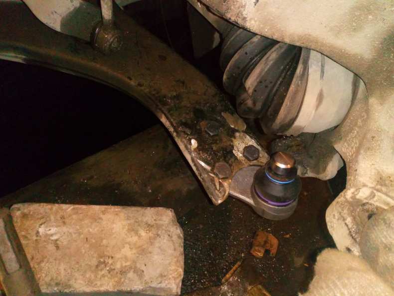 Узнать состояние шариковой опоры на помосте или яме нетрудно. На пружины подвески давит масса автомашины в сжатом состоянии. Хватит того, чтобы вставить монтировку меж цапфой и рычагом, сделав несколько ритмичных движений.
