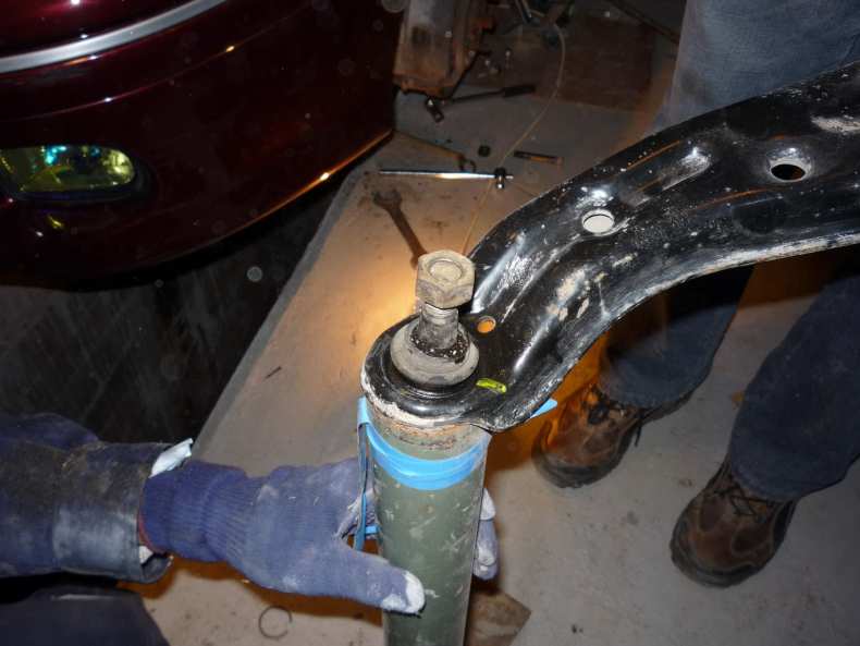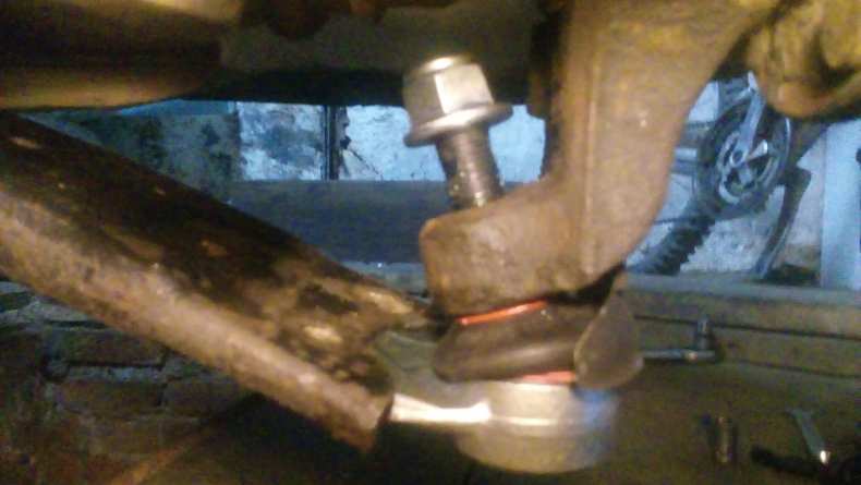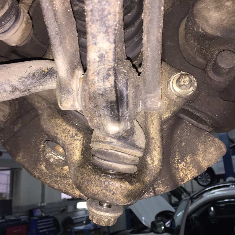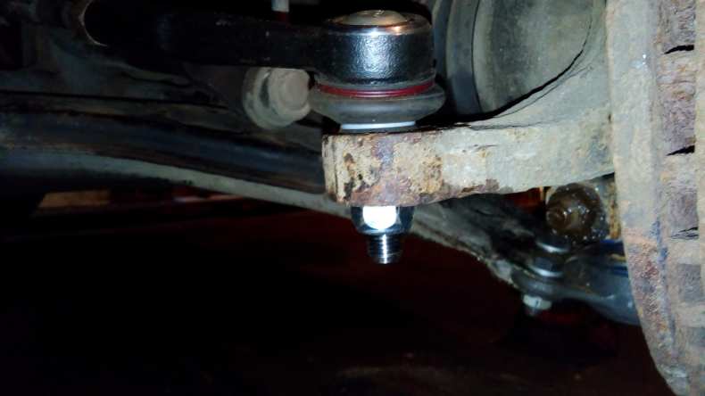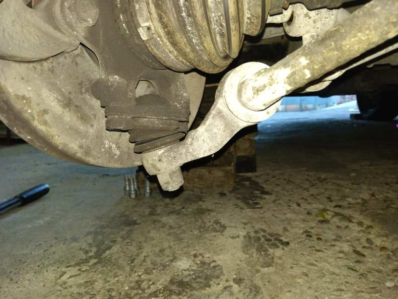 - При диагностировании на авто подъёмнике нужно прижать пружину гидравликой, наставленной под рычаг внизу и для определения неисправности узла применить ломик. Для опознания состояния вынутой из машины шаровой тяги хватит развернуть её на сторону.