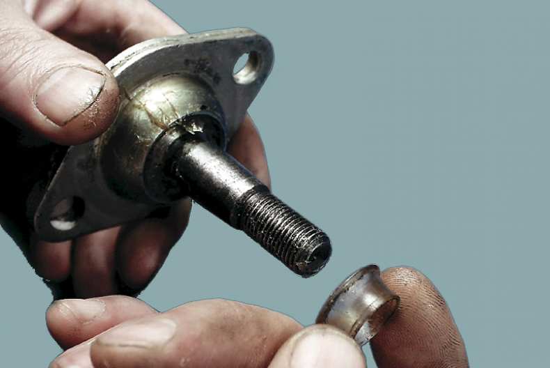 Передвигаясь с нагрузками, шар потихоньку искажает отверстие корпуса, что нередко заканчивается тем, что палец вынимается из своего паза. Когда нарушается непроницаемость пластичного пыльника – это ведёт к раннему разрушению полимерной вкладки.