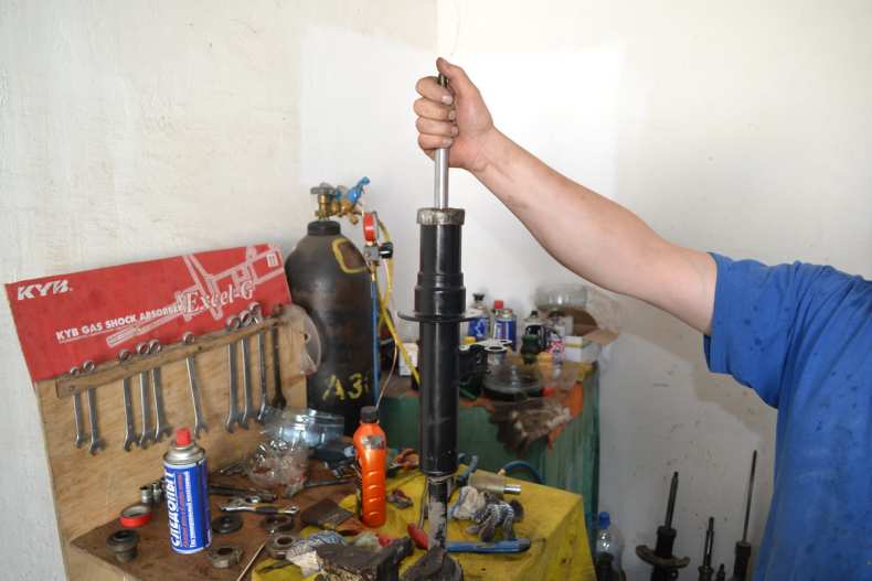 - Когда кузовная часть выскакивает наверх довольно резко, то это говорит о неработоспособности стойки.