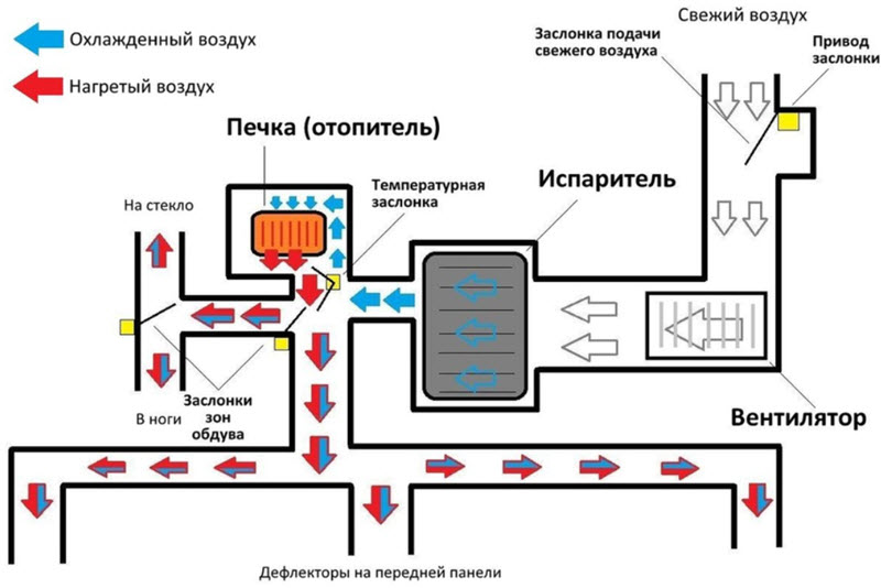 Источники тепла и холода вполне традиционны, это испаритель кондиционера и радиатор отопителя. Их мощность всегда достаточна и мало кого интересует в численном выражении. Поэтому потребительские качества установок классифицируются по количеству зон регулирования температуры в салоне.