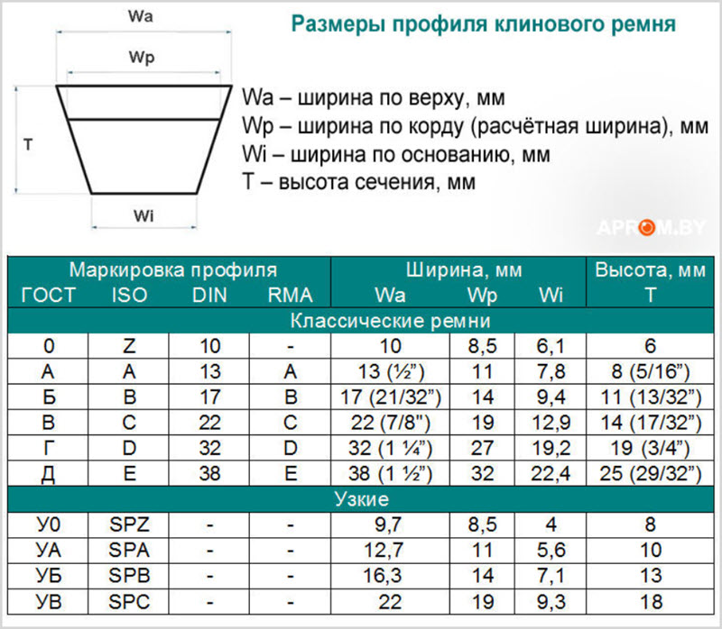 Достаточно знать типоразмер по ширине трапеции, которых совсем немного, и длину, её можно измерить по положению шкивов, а также используя изношенный или порвавшийся ремень.