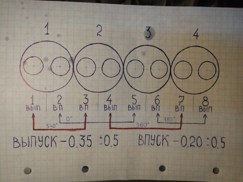 - На впускных – 0,20 мм.