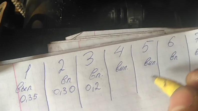 - Щуп вставляется в зазор между кулачком и клапаном;