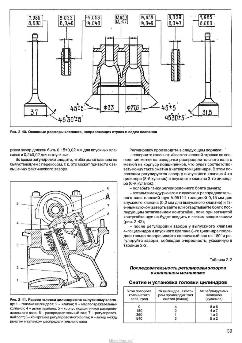 - Выпускные клапаны – 0,40 мм;