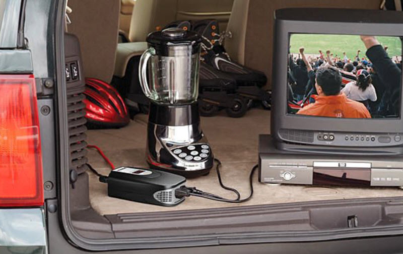 Поскольку все электротовары в разной степени приспособлены для питания от бытовой сети, то именно её и следует использовать в качестве унифицированного стандарта энергоснабжения. Потребуется достаточно мощный преобразователь, чтобы пользоваться всеми благами электрооборудования, подключая их от автомобиля.