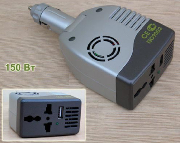 Когда предполагается работа с мощностями максимум до 200 Ватт, то можно приобрести недорогой преобразователь, подключаемый к прикуривателю.