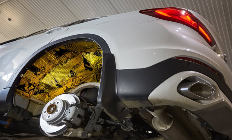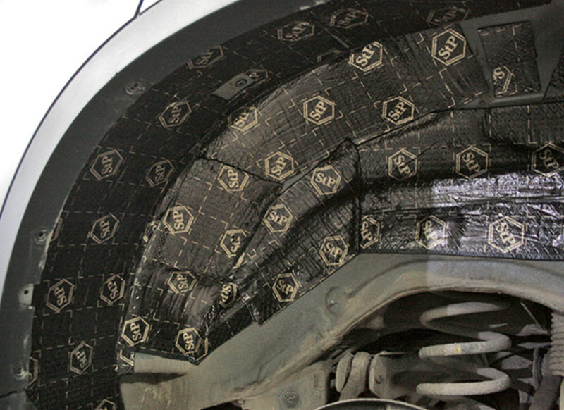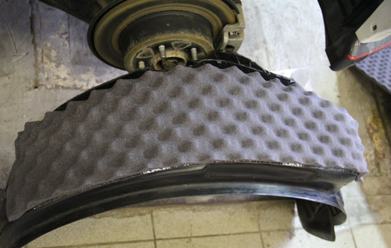 Снаружи арку достаточно просто оклеить панелями виброзащиты. Для более полного эффекта рекомендуется совместить две технологии, антишумовой материал с вибродемпфирующим.